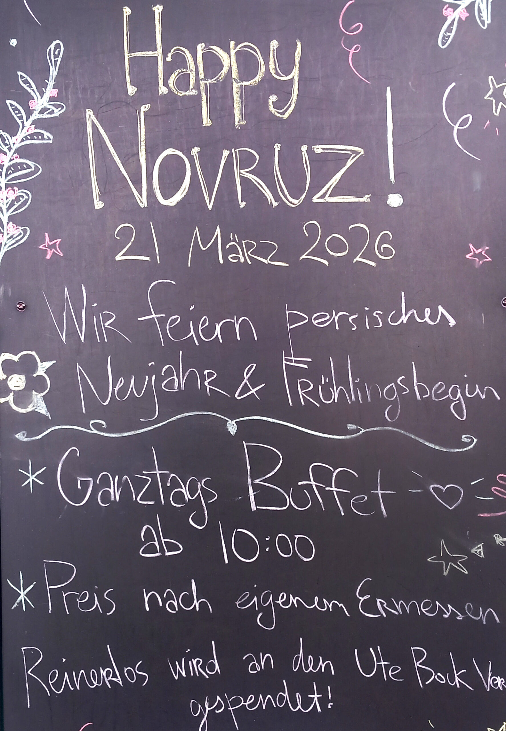 Zum Frühlingsbeginn werden wir am 21. März von 10 Uhr Vormittag bis in den Abend ein großes Buffet mit Spezialitäten unserer afghanischen Köch*innen anbieten – gegen freie Spende für den Ute Bock Verein. Einfach vorbeikommen und durch kalte, warme, süße und salzige Speisen durchkosten!